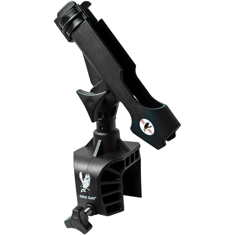 Eagle Claw Rod Holder Boat Clamp for Fishing Rods, Black The Eagle Claw Clamp-On Aluminum Boat Rod Holder is crafted of resistant, high-impact durable plastic. This device holds rods up to 1.375-inches. Eagle Claw, the brand that started it all, remains the staple of today’s value conscious fisherman.