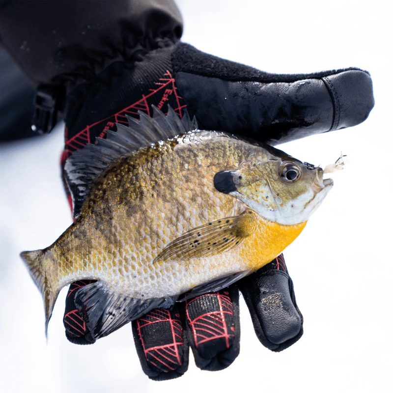 - DWR treated goat skin palm and thumb reinforcements are strategically placed with ice fishing tasks in mind.