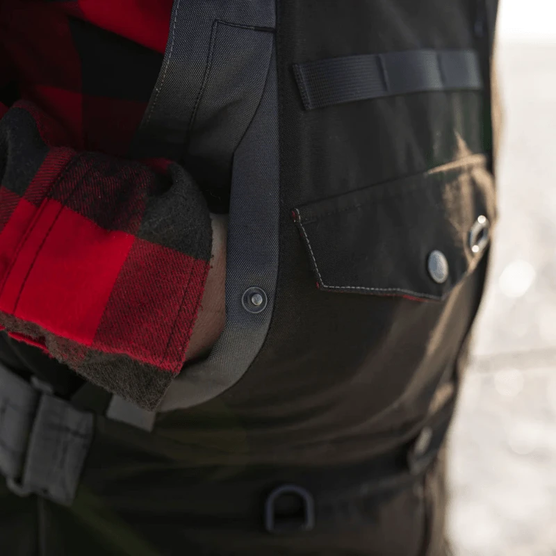 - Adjustable hem provides versatility to set a desired bib length, ranging from 28″–36″ inseam