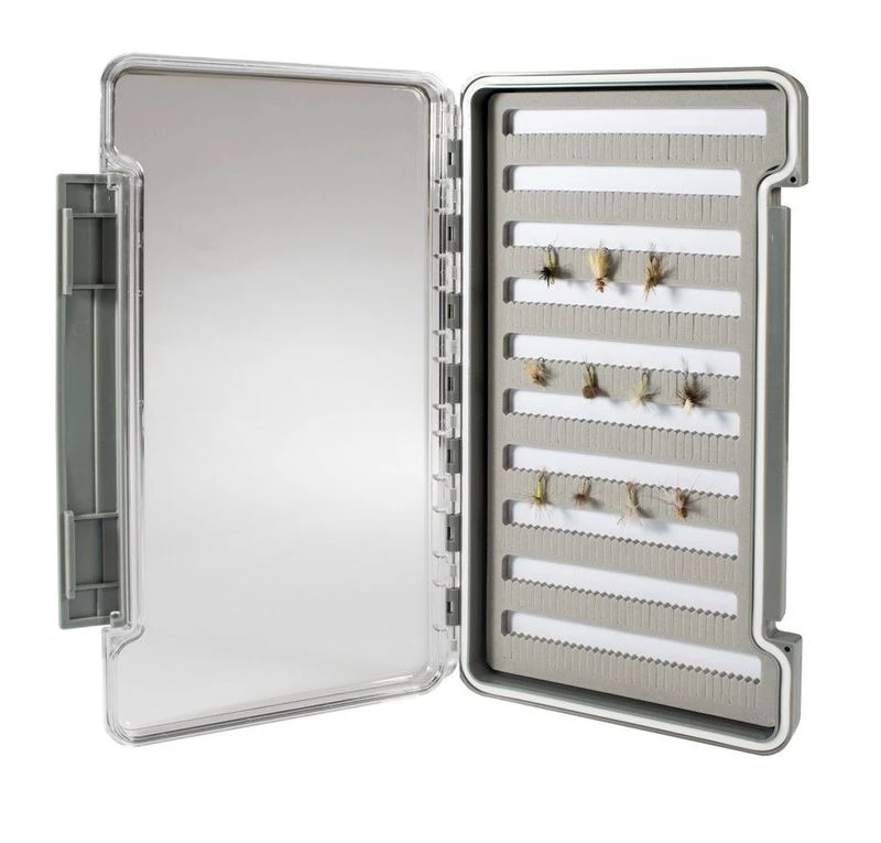 The rubber gasket of the New Phase XL Waterproof Slim Fly Box makes it virtually waterproof and will float if dropped. The Clarified strong ABS has a clear lid to see your flies easily while the secure, snap tight latch protects your valuable fly collection.