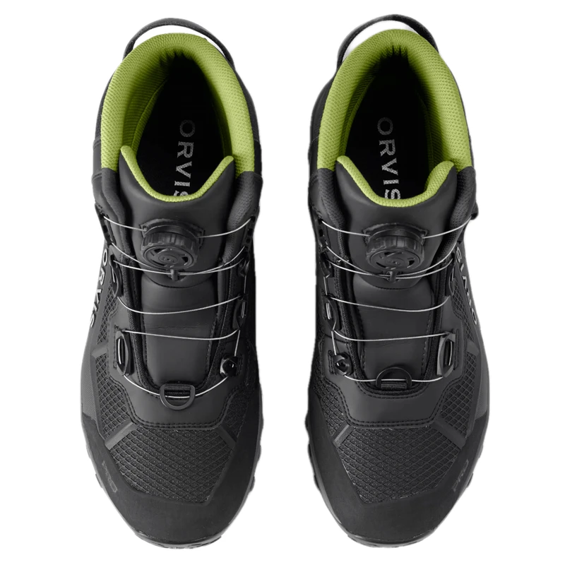 A perfect fit means more miles in comfort, and covering water is what the PRO BOA Wading Boot’s all about. Featuring the BOA Fit System this is, by far, the most advanced wading boot ever. The PRO Wading Boot was an industry-first collaborative effort with MichelinĀ®, built on an outsole compound specifically designed for fly fishing. This revolutionary new sole design is an industry-disrupting advance in wet rubber traction. The Michelin Outdoor Extreme outsole offers 25% better abrasion resistance and a resounding 43% improvement in wet rubber traction over the competition. Using Michelin tire geometry, it offers a wider footprint for stability, a higher ratio of surface contact, and a lug pattern that reduces shock and improves pressure distribution. The two-layer midsole has a co-molded ESS plate that provides improved stud retention and torsional stability. Orvis partnered with OrthoLiteĀ® to create a 3D molded X25 insole designed for high-impact sports, delivering maximum comfort and arch support. An industry-first cast PU upper eliminates seams while providing a zoned cage for added stability, grip, and extreme abrasion resistance without the added bulk. The boot is higher cut for ankle support and lined with closed-cell foam. Scratch rubber at the toe cap and heel for abrasion resistance, an oversized heel pull for easier on-and-off, and tightly woven laces reduce broken laces.