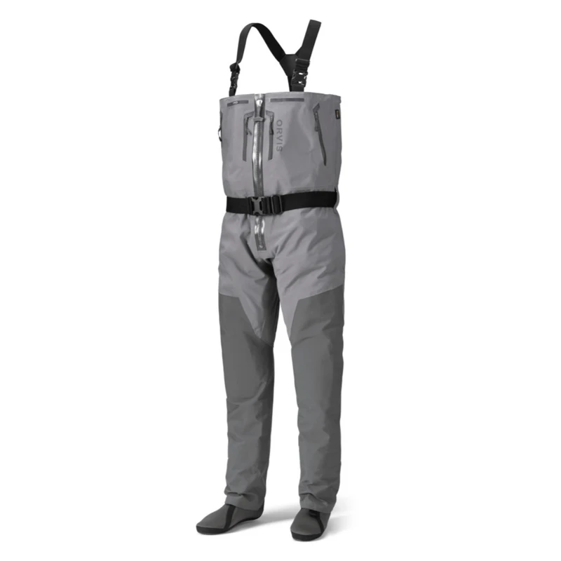 For convenience, comfort, and quick on-and-off, nothing compares to a these zippered PRO fly-fishing waders for men. The convenience issues are obvious, but the wader has to be of the highest quality construction to provide confidence in performance. The PRO Wader is the most durable, abrasion-resistant, and feature-rich wader Orvis ever built. Built with exclusive 100% CORDURA fabric with four layers in the upper and five layers in the lower, the addition of a TIZIP Masterseal waterproof zipper tested for more than 200 days, provides a remarkable level of combined convenience and performance. In the upper are split fleece-lined handwarmer pockets, two external storage pockets with YKK AquaGuard coated zippers, and split Hypalon daisy chain for tool docking. Inside are two internal storage pockets for fly boxes and accessories. Adjustable elastic suspenders with opposing buckles for waist-high conversion. The five-layer lower incorporates removable OrthoLite X25 knee pads, PU cage mesh gravel guards to eliminate drag and water collection, and anatomically correct neoprene booties. Athletic Fit.