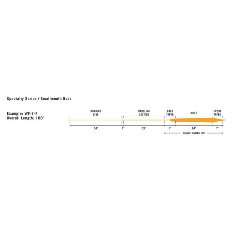 The weight distribution and powerful front taper of the The RIO Smallmouth Bass Fly Fishing Line easily casts typical Clouser and Bass bug flies, while a unique handling section at the back of the head allows anglers to mend and control the fly effectively. The line is built with a hard, warm water coating that withstands typical summer heat, and ensures the line shoots through the guides with ease.